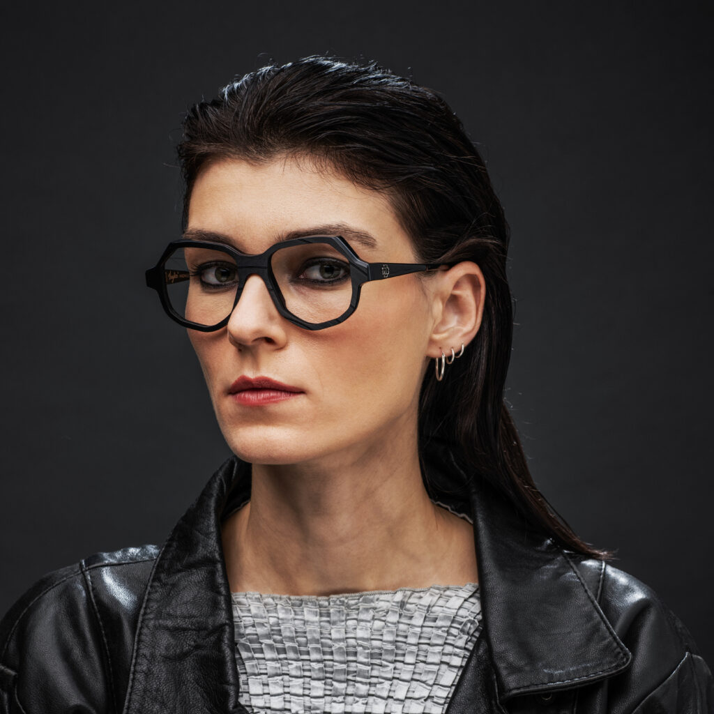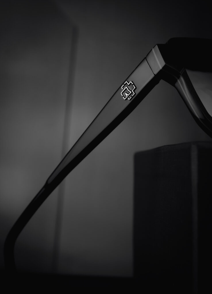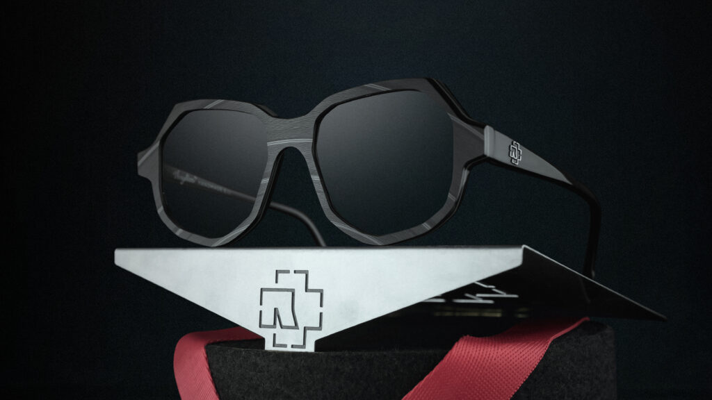 A RAMMSTEIN EYEWEAR formavilágát a minimalizmus uralja: szögletes, funkcionális sziluettek, fekete, szürke és fém tónusok. A hangsúly nem a látványos brandingben, hanem a részletek jelentésében rejlik.