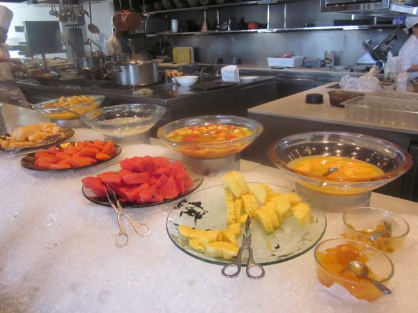 In the mornings there was a pretty full breakfast buffet including asian soups, omelettes, sushi, pastries, dim sum, all kind of fruits and more. They serve lots of choice at the buffet and a menu to order from as well.
