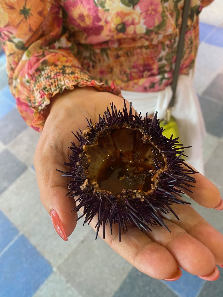 Hier fühlt man sich schnell wohl. Und hungrig geht niemand ins Bett. Überall finden sich viele feine Restaurants. Sie servieren alle authentische Meeresfrüchte und eben Paella. Los gehts! Bevor ich zur Paella kam, musste ich erst einmal eine Suppe und ein Gericht mit Langusten und Tintenfisch essen. Das war genussvoll, ein feiner Start. Dann ging es los mit der Paella. Sie wird traditionell in einer Kupferpfanne serviert. Mir wurde gesagt, dass eine echte Paella nur aus Reis, Hühnchen und Kaninchen bestehen sollte. Kein Fisch und keine Meeresfrüchte. Das wusste ich nicht.   Am anderen Ende befindet sich eine Ansammlung beeindruckender moderner Gebäude, entworfen vom valencianischen Architekten Santiago Calatrava. Dort steht auch das Opernhaus. Man könnte hier problemlos Tage verbringen, aber wir haben noch einige Restaurants zu testen. Zum Abendessen gehen wir in das mit einem Michelin-Stern ausgezeichnete Restaurant Vertical. Durch die riesigen Fenster habe ich einen herrlichen Blick auf die nächtliche Stadt, und das Degustationsmenü vereint Tradition und Moderne. Mir schmecken die Austern (oben) und das 72 Stunden lang geschmorte Rindfleisch sehr gut. Auch das Mangoldrisotto mit Iberico-Schinken war vorzüglich. Wow!  Zu jedem Gang wurden passende regionale Weine serviert. Dann  ab in die City. Auf der Liste der Dinge, die man unbedingt gesehen haben muss, stehen die Altstadt und die Kathedrale aus dem 13. Jahrhundert. Ihr größter Schatz ist der Heilige Gral, der Kelch, aus dem Jesus angeblich beim letzten Abendmahl getrunken hat. Cheers.   Der wunderschöne Zentralmarkt ist der beste Ort, um frische Meeresfrüchte wie Seeigel zu probieren.   Ein schönes Post Tapas Abendessen hatten wir in einem normalen Restaurant, nur einen kurzen Spaziergang vom Zentrum entfernt. Dort gab es Gerichte wie hausgemachter Frischkäse mit Mojama (gesalzenem Thunfisch) und Mandeln. Ich war schon satt, esse aber mit viel Genuss Porco Loco mit einer Sobrassada Sauce ( Wurst aus Mallorca) mit Freude auf. Das Dessert aus Horchata-gebratenem Brot und Zimteis war wunderbar. Wir sind dann mit dem Bus zum Strand gefahren.