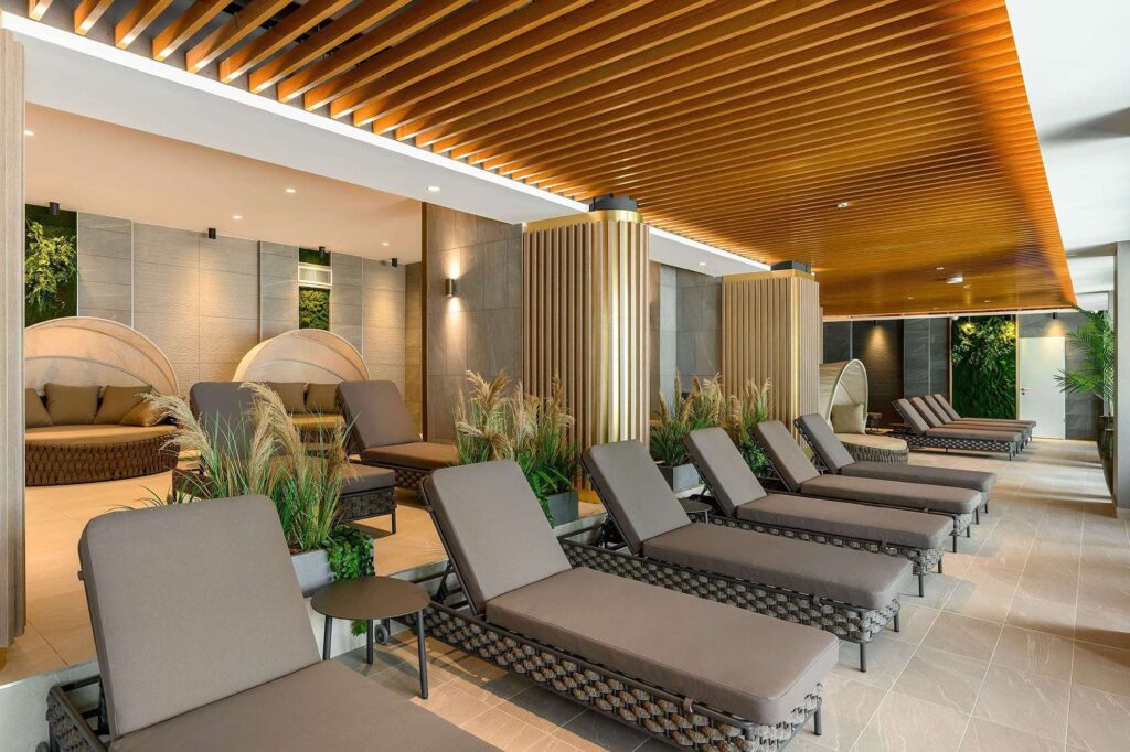 A szálloda kiemelkedő wellnessrészlege beltéri és kültéri medencékkel, szaunavilággal és panorámás szaunaszeánszokkal várja a vendégeket.