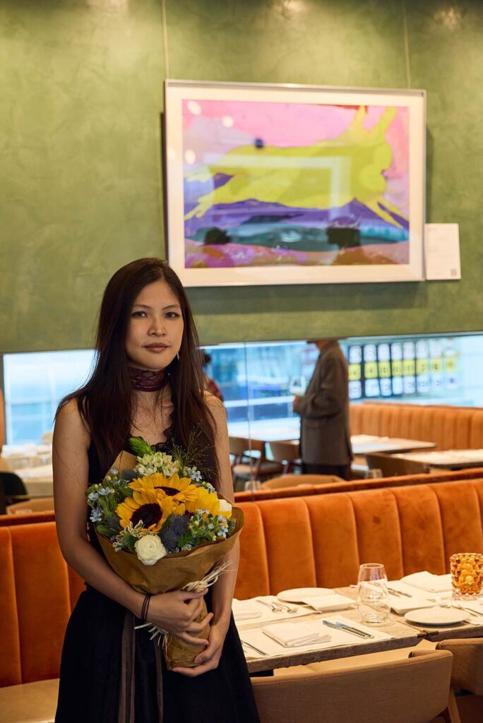 Katrina Leigh Mendoza Raimann and Ailsa Wong were named runners-up for their burlap, wool and cotton yarn piece named Small Stepping (2022) and archival inkjet print on paper Lightning respectively.
