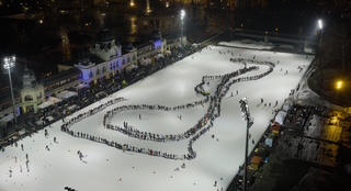 Az este tetőpontján a tömeg a jégre lépett, hogy valami egészen különlegeset hozzon létre: 695 korcsolyázó alkotott egyetlen, több száz méteren kígyózó, összekapcsolt emberláncot, amely új, hitelesített magyar rekordot jelent az „együtt korcsolyázás” kategóriájában. Az új magyar rekord meghaladja a jelenlegi Guinnes-rekorder 395 fős létszámot, amit egy igazán „jégre termett” országban, Kanadában jegyeztek fel.
